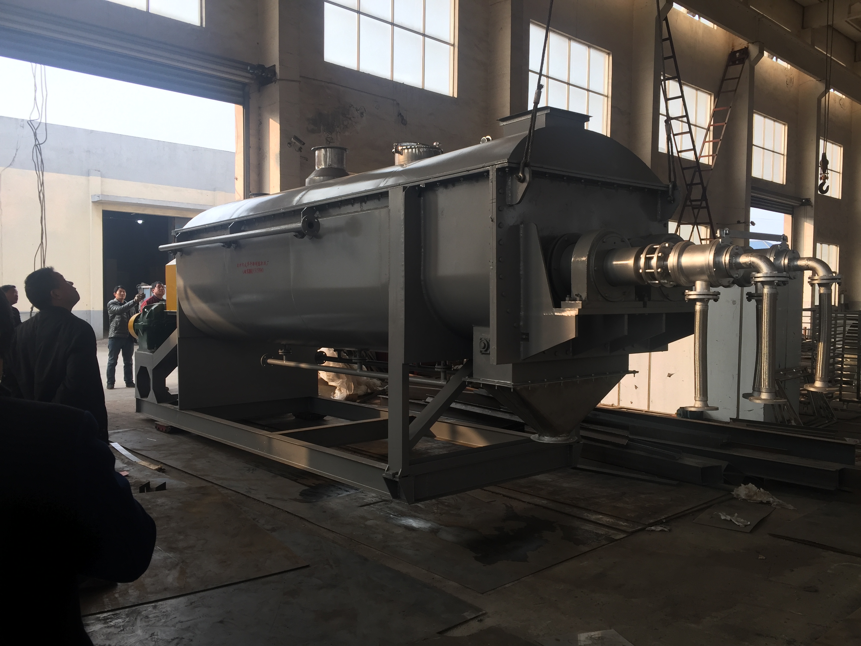空心槳葉干燥機(jī)是一種在設(shè)備內(nèi)部設(shè)置攪拌槳,使?jié)裎锟圃跇~的攪動(dòng)下,與熱載體以及熱表面充分接觸,從而達(dá)到干燥目的的低速攪拌干燥器。結(jié)構(gòu)形式一般為臥式雙軸。槳葉式干燥器分為熱風(fēng)式和傳導(dǎo)式。熱風(fēng)式即通過熱載體(如熱空氣)與被干燥的物料相互接觸并進(jìn)行干燥,在傳導(dǎo)式中熱載體并不與被干燥的物料直接接觸,而是熱表面與物料相互接觸。傳導(dǎo)式的優(yōu)點(diǎn)是物料不易被污染,排氣量小,熱效率高,體積相對(duì)小,有利于節(jié)約能源及防止空氣污染.